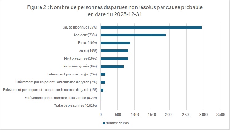 Graphique 2 : Nombre de personnes disparues non résolus par cause probable en date du 2025-12-31